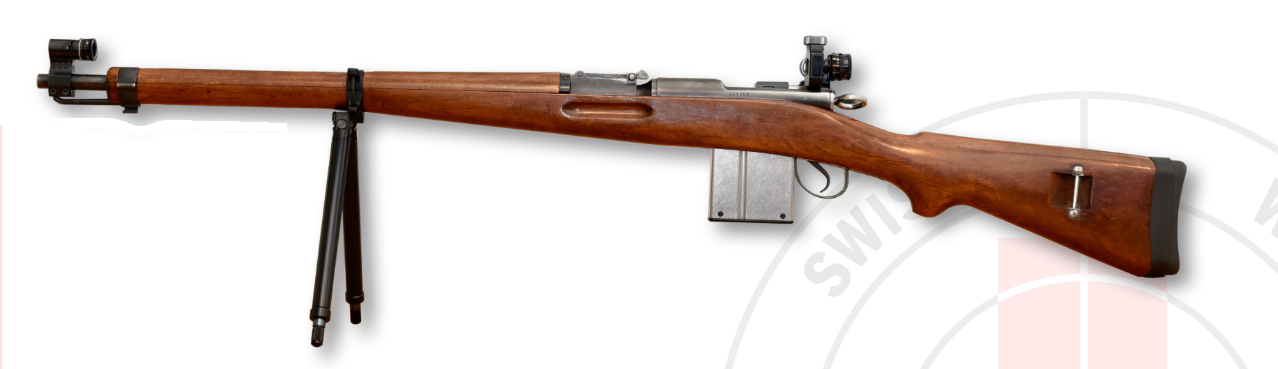 Fusil suisse historique, apprécié pour son charme et son authenticité. Réputé pour sa précision légendaire.